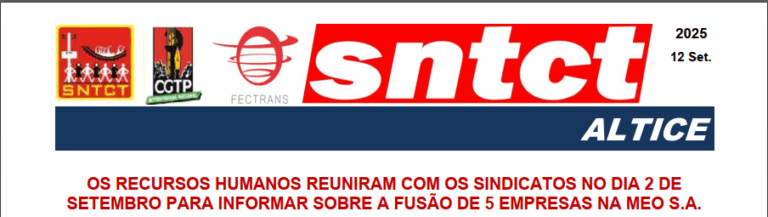 Grupo MEO/Altice OS RECURSOS HUMANOS REUNIRAM COM OS SINDICATOS NO DIA 2 DE SETEMBRO PARA INFORMAR SOBRE A FUSÃO DE 5 EMPRESAS NA MEO S.A. Ler mais » Setembro 15, 2025